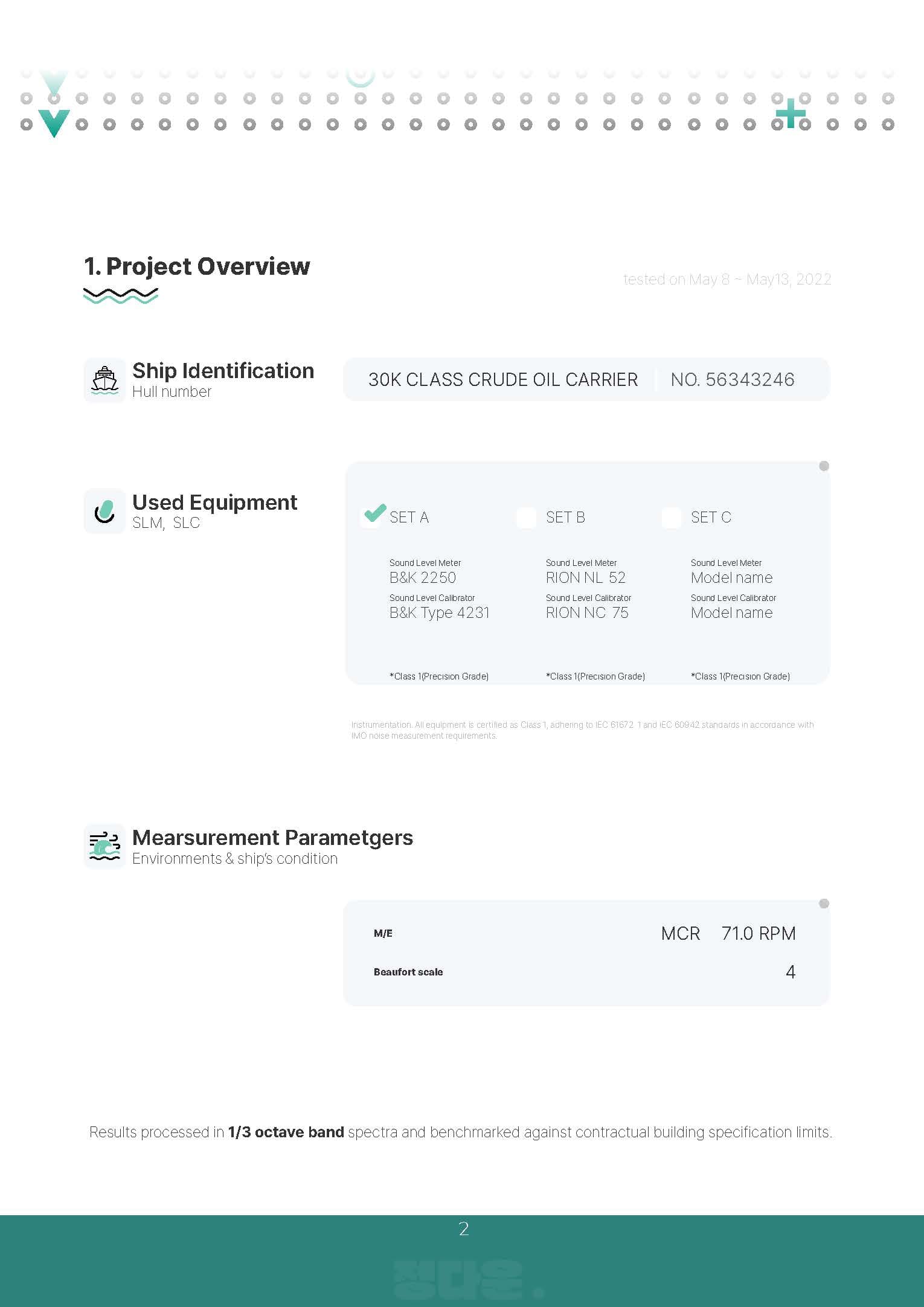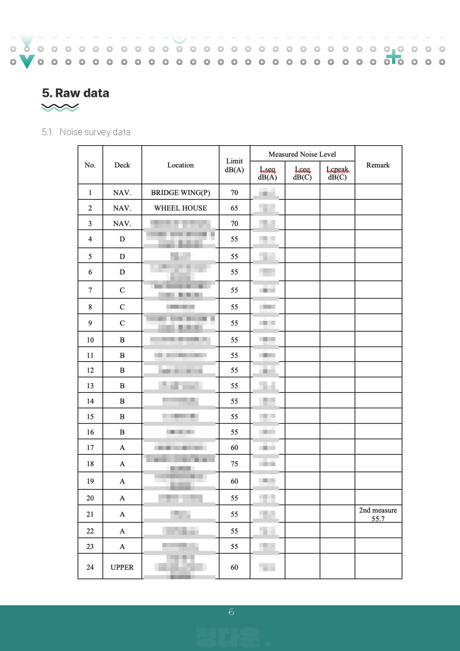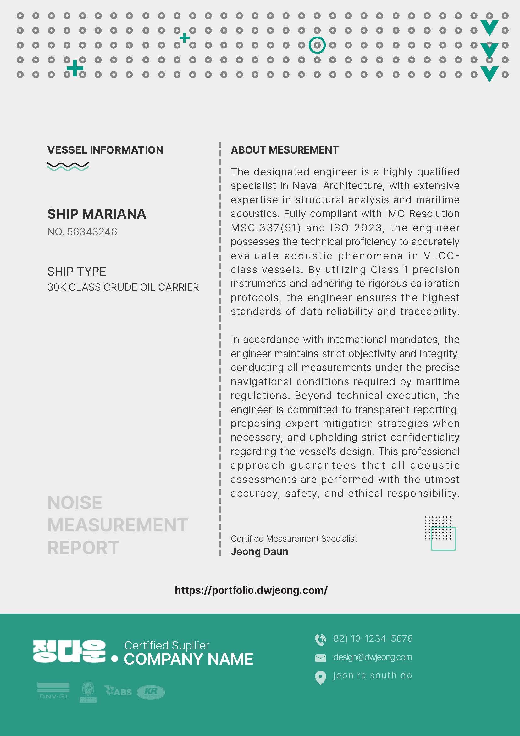 - 적용 범위: 선급 승인 전문공급업자의 보고서가 요구되는 모든 선박의 소음 계측 업무 및 관련 서비스에 강제 적용한다.
