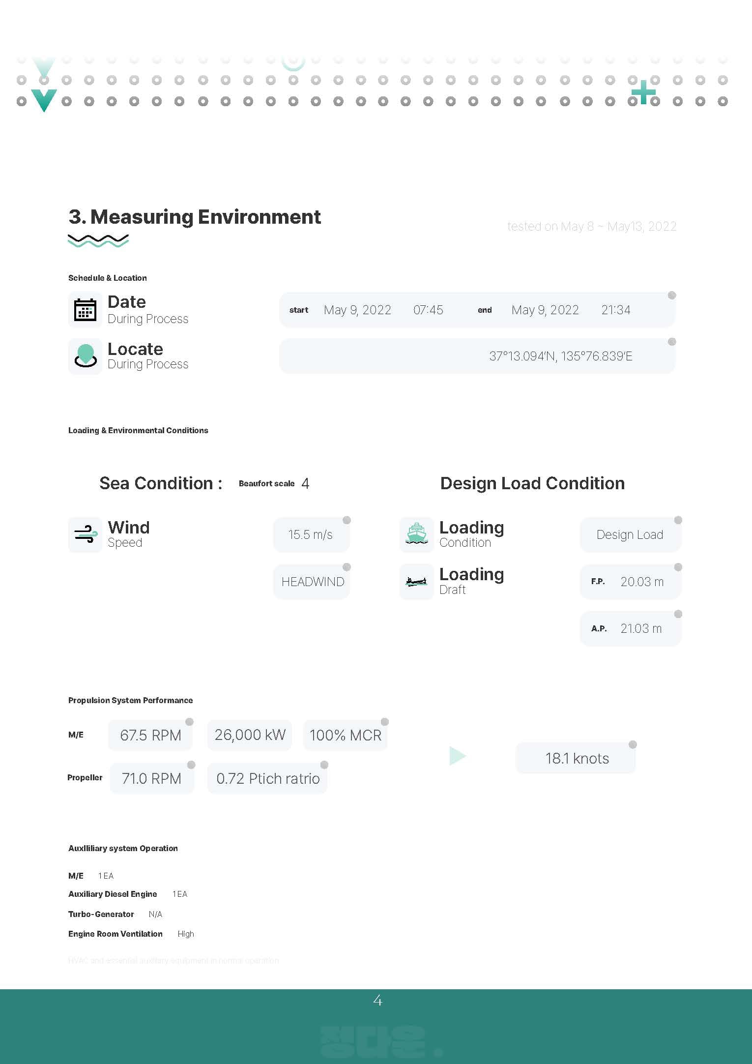 - 환경 통제: 정확한 데이터 수집을 위해 측정 중에는 선박 운전 및 계측 필수 인원 외의 해당 구역 출입을 엄격히 제한합니다.